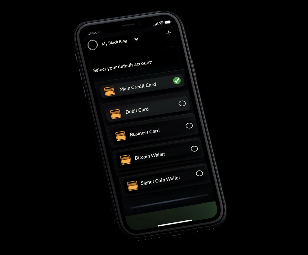 With Signet Payment rings you have the option to store all of your payment methods and swap your defaults anytime from the Signet mobile app.